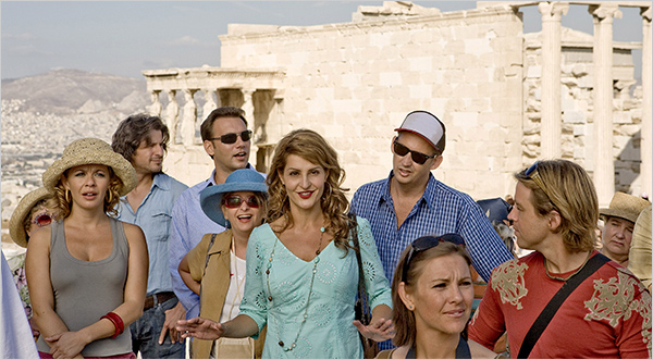 mostly made up of polite Canadians, an in-joke with Vardalos who is herself, Greek-Canadian. In contrast, Georgia's unsavory group consists of the Ugly Americans (played by SNL's Rachel Dratch and Harland Williams) who seem to have an affinity for red, white and blue t-shirts; an incomprehensible Aussie couple who carry oversized cans of Foster's Larger wherever they go; a crotchety elderly couple; an overweight American college kid; an obnoxious, cell phone- addicted IHOP manager; an uptight and dysfunctional British family; two just-divorced-and-on-the-prowl Spanish spinsters; and an old woman with a penchant for shoplifting from trinket shops in Plaka. |