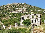 Troubled years The castle of Mystras was founded in 1249 by Geoffroi de Villehardouin on an acropolis leading up to the slopes of Mount Taygetus, 6km northwest of Ancient Sparta. Those were the difficult years following Constantinople's fall to the Franks in 1204, a disaster that led to the partition of Romania (as the Byzantine Empire was called by its inhabitants). The de Villehardouins gained rule over much of the Peloponnese, founding the principality of Achaia. To establish their governance over the unruly locals, they dotted the Peloponnese with forts. Anarchy reigned in southern Greece, as Greeks and Franks battled for dominion, establishing principalities against a background of invasions by Slavs and Albanians. The incessant ethnic strife would weaken Romania, heralding the final downfall to the Turks. De ViIlehardouin's castle was erected on a stronghold dominating the plain of Sparta. The rocky hill was known as Myzethras, a name with uncertain origins. |