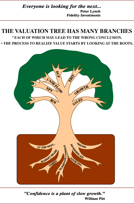In summary, the valuation tree has many branches, each of which may lead to the wrong conclusion or decisions. In order to realize value, the process starts by looking for or establishing strategic roots for a business. Owners should incorporate a strategic plan as soon as possible, using it as a guide for growth and for creating value in the company.