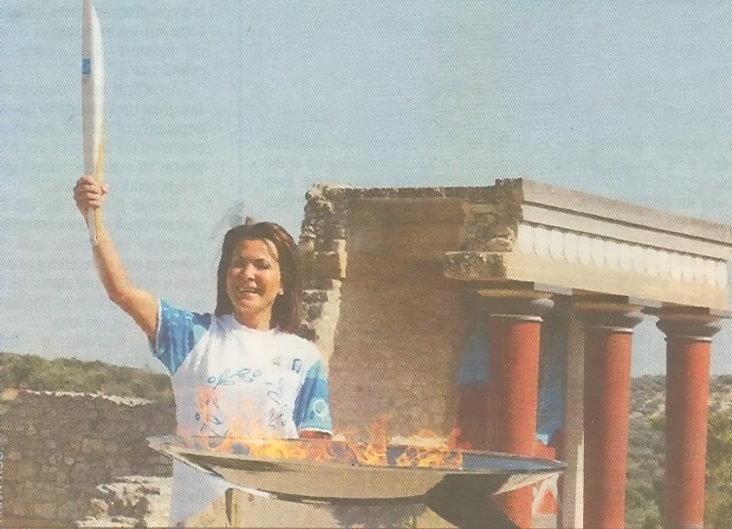 14 July 2004: The arrival of the Olympic flame on the island of Crete after a year-long relay around the globe marked the final lap in Greece's preparations to host the Games at their historical birthplace. Athens 2004 organising committee (ATHOC) president Gianna Angelopoulos-Daskalaki is all smiles as she lights the Olympic cauldron in the ancient Minoan palace of Knossos, after announcing that all the venues for the Games were finally ready to welcome the world's athletes, barely one month ahead of a magnificent opening ceremony on August 13. But the Olympic torch, a symbol of peace meant to unite the world in the runup to the Games, also became an |