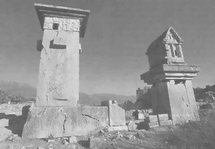 Now, after centuries of neglect, teams of Turkish and German archaeologists have been working under the hot sun of this small Mediterranean seacoast town, uncovering some of its treasures. Among them, liberated from the many hundreds of truckloads of sand that covered it, is the actual parliament building where the elected representatives of the Lycian League met. It has rows of stone seats arranged in a semicircle, the same arrangement used in the chambers of the American Congress. Its stone-vaulted main entrances are intact, and so is the thronelike perch where the elected Lyciarch, the effective president of the League, sat. |