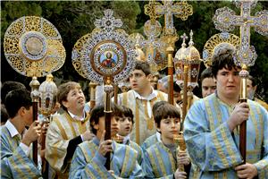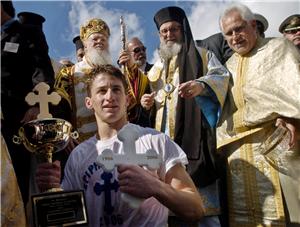 ![]() His All Holiness Bartholomew I Throws the Cross Photo by St. Petersburg Times |