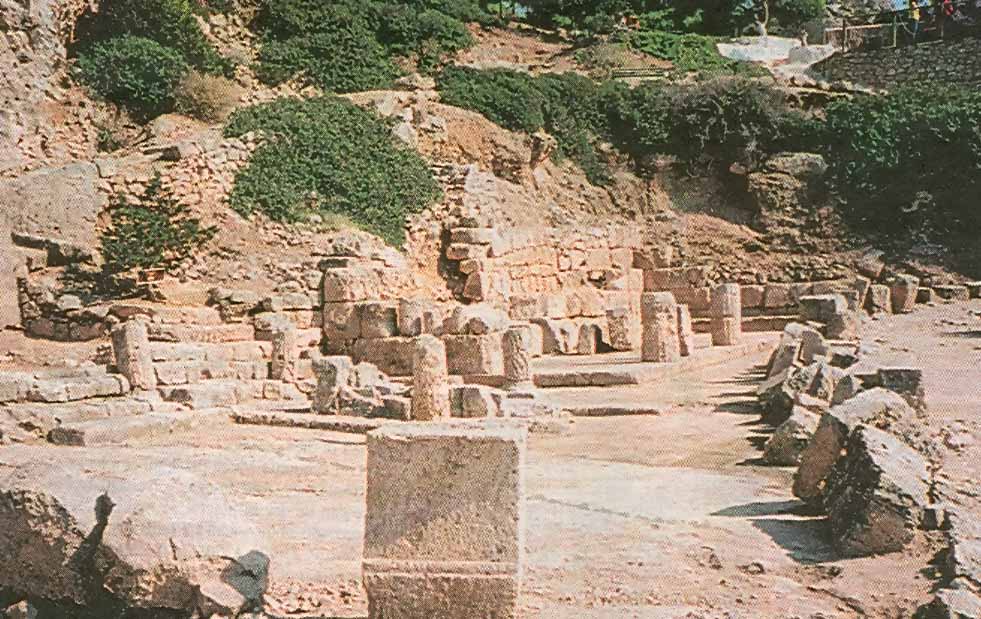 On the upper half of the site, away from the sea, Payne's team discovered another temple to Hera (Limenia or of the harbour), roads, houses, watchtowers and diverse buildings spanning several eras, ending with the Hellenistic. Here, the most interesting ruins have to do with water supply. One is a twin-apsed cistern, which looks more like a sunken Byzantine church than a water repository. The other is a multichambered fountain, lavishly camouflaged by caper bushes. |