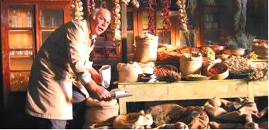 Herald Tribune) ? By Abby Weingarten ? Food as passion. It's a theme moviegoers have long observed in films from 'Like Water for Chocolate' to the more recent 'Chocolat.' Food is the lifeblood of humanity, garnishing tender moments and adding pizzazz to personal experience. The plot device surfaces again in 'Politiki Kouzina / A Touch of Spice,' a semi-autobiographical dramedy by writer/director Tassos Boulmetis. Yet somehow, this Greek/Turkish subtitled feature does not feel redundant. Rooted in novel narratives and sweeping, dreamlike cinematography, the much-used concept never looked so fresh. Compelling from the get-go, the first shot is of a mother dabbing sugar onto her breast to lure a nursing infant. The baby, Fanis Iakovides, grows into an astrophysicist and closet chef (played as an adult by George Corraface). His upbringing is rich with culinary imagery, stemming back to a childhood spent in the Constantinople spice shop of his Grandpa Vassilis (Tassos Bandis). There, a young Fanis (Markos Osse) witnesses Grandpa giving customers unorthodox tips, like to use cinnamon instead of cumin in their meatballs. 'Cinnamon makes people look each other in the eyes,' he says. Grandpa's wisdom is venerable, and he teaches Fanis how everything in existence (from the galaxies to etymology) traces back to simple spices. Pepper, he says, is akin to the sun that warms and burns. And "both food and life require salt to be tastier." Even the word "astronomer," Grandpa says, is concealed in the term "gastronomer." The bond between Fanis and Grandpa is taut, but it is later torn when riots erupt in Cyprus and the Turkish government orders all Greek citizens deported. The family is divided, as Fanis and parents unwillingly relocate to Athens. |