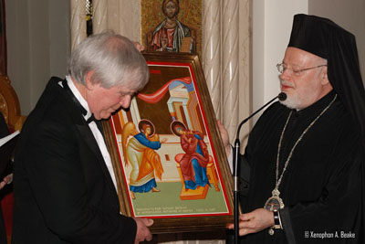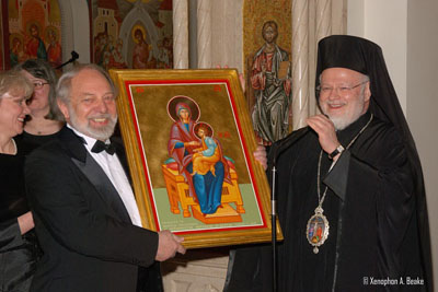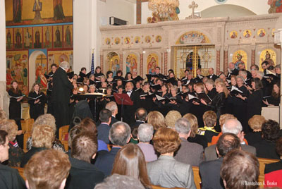BROOKLINE---Metropolitan Methodios and two large appreciative audiences from the Greek Orthodox Community of New England and the community-at-large were inspired and enthused during two performances of Rachmaninoff’s The Liturgy of St. John Chrysostom presented Saturday evening and Sunday afternoon by the Rachmaninoff Festival Choir and the Down East Singers & Bowdoin Chorus at the Annunciation Cathedral of Boston. The concerts were presented in honor of Metropolitan Methodios’ 25th Anniversary to the Episcopacy. Following the performances everyone enjoyed a reception in the Cathedral Hall. Guests had the opportunity to express their appreciation for Metropolitan Methodios’ visionary leadership and to offer their best wishes. |