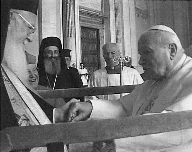 HIS ALL HOLINESS, ECUMENICAL PATRIARCH BARTHOLOMEW in his continuation of the tradition of fellowship and dialogue between the Churches that are in a state of schism, visited the Church of Rome last June during the Feast Day of the Throne of the Church of Rome in order to celebrate the 40 year anniversary of the meeting between the ever-remembered Patriarch Athenagoras and Pope Paul VI in Jerusalem in 1964. This meeting signaled the beginning of a new era of fellowship and dialogue between the Orthodox and the Roman Catholic Churches. |