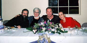 After guests were treated to a sumptuous meal prepared by chef Jim Yalouris and his fiancée Gerta, several friends and representatives of the church community spoke eloquentlyand humorously--about Rhoda, paying tribute to her many fine qualities. Among the speakers were Fr. Basil Arabatzis, Mrs. Alex Hadiaris, Mr. John Maragus, Mrs. Helen Spirounias, Mr. Daniel Conley, and Mr. and Mrs. Christos Papoutsy. Mrs. Conley received a presentation bouquet of flowers and a Memory Album, to which many guests had contributed photos, news clippings and congratulatory letters in advance of the party. Following the tributes, delectable desserts were served by the ladies guild and caterer: traditional Greek pastries, American favorites, and a birthday cake specially prepared by Reilly’s Bakery of Biddeford, Maine. The five-tier cake was designed around the party theme: purple-and-lilac colored hat boxes topped by a hand-made silk purple hat. Guests rounded out the evening stepping high to the rhythmic beats of the Hellenic Ensemble led by Mikel Papoutsy. After Rhoda and her son led the first dance, guests joined in the fun and danced for hours in the recently dedicated church hall, celebrating a personal and community milestone on the occasion of Mrs. Conley’s 70th birthday. Chronia Polla, Rhoda, kai na ekatostisis!