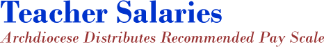 With ten years' experience, a teacher with a B.A. or B.S. would make between $26,500 and $28,500 -- an increase of $4,500. A teacher who has a master's degree could make $31,500 after ten years of teaching parochial school. Salaries of teachers serving for more than ten years are "adjusted accordingly." The salary scale, distributed by the Archdiocese's Office of Education, represents "minimal figures," the Chancellor's office said in a letter to Parish Council and School Board members. Actual salaries should also "take into account the cost of living for the area the school is located in," the letter stated.