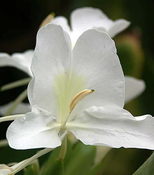EXOTIC white ginger lily (Hedychium coronarium) is flowering now, its deliciously scented, butterfly-like white blooms gently sweetening the night air. This rhizomatous perennial comes from India and left to grow unhindered can reach 3 metres high. It will also grow happily in a pot, though will not reach 3 metres |