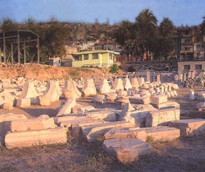 ![]() Ancient Roman agora with Mt. Pagus in background |