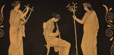 ![]() Musical competition with lyre and double flute, from red-figure Greek vase, 1813 engraving by Alexandre de la Borde. |