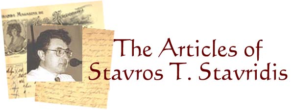 About the Author Stavros Terry Stavridis was born in Cairo, Egypt in 1949 of Greek parents. He migrated to Australia with his parents in September 1952. Stavros has a Bachelor of Arts (B.A) in Political Science/Economic History and B.A (Hons) in European History from Deakin University and M.A in Greek/Australian History from RMIT University. His MA thesis is titled "The Greek-Turkish War 1919-23: an Australian Press Perspective." Stavros has nearly 20 years of teaching experience, lecturing at University and TAFE (Technical and Further Education, the equivalent of Community College in the US) levels. He has presented papers at international conferences in Australia and USA and has also given public lectures both in Australia and on the West Coast of the US. Many of his articles have appeared in the Greek-American press. He currently works as a historical researcher at the National Center for Hellenic Studies and Research, Latrobe University, Bundoora, Victoria, Australia. Stavros' research interests are the Asia Minor campaign and disaster, Middle Eastern history, the Assyrian and Armenian genocides, Greece in the Balkan Wars 1912-13 and the First World War and history in general. HCS maintains a large selection of fine pieces written by Mr. Stavridis which viewers are invited to view at the URL http://www.helleniccomserve.com/stavridisone.html Read More About the Greeks of Asia Minor HCS readers who enjoyed this article may wish to view others about Smyrna and Asia Minor in our section specially created for these topics at the URL http://www.helleniccomserve.com/smyrnaopener.html. We also maintain a permanent, extensive archives of articles which readers are invited to browse at the URL http://www.helleniccomserve.com/archivesmyrnaasiaminor.html . |