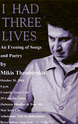 Gail Holst-Warhaft, an adjunct professor at Cornell, scholar and musician, met Theodorakis 35 years ago in Sydney, Australia and has since collaborated with him in concerts,