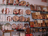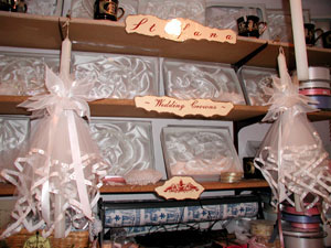 Tina Klidaras is a proud US citizen and long-time resident of Newburyport, but a native of Lesvos, where she and her family still own property and olive groves. An active member of the local Annunciation Greek Orthodox Church community, she regularly offers her time and talent by preparing traditional "prosforo" bread for the Divine Liturgy and by other devotional tasks. She is the proud mother of two sons and three grandchildren. Her US store, Tina's European Fashions and Greek Imports, is located on 30 State Street in Newburyport, Massachusetts. Hours run 10:00 am to 6:00 pm Monday through Saturday and 1:00 to 6:00 pm on Sunday. In addition to the imported goods mentioned above, the proprietor offers custom-designed and hand-made wedding and christening favors and adornments for sacramental candles. Businessperson par excellence, Mrs. Klidaras can accommodate phone and fax orders and ship throughout the country, both regularly stocked items and custom orders: (tel.) 978-462-7043; (fax) 978-463-9393.