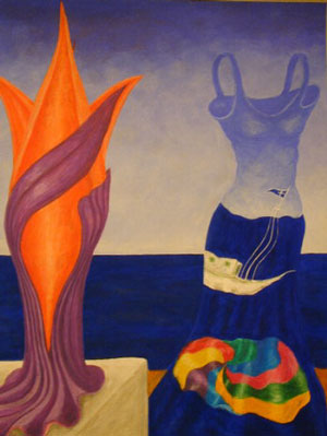Fanciful touches -- earthenware jugs dressed up in blouses and shirts, dancing hats, and floating dresses -- recall Magritte. But Tsoris admits no pretensions. The purpose of his art, he says with enthusiasm, is to bring pleasure. "My art is about the moment when I'm making it, the feeling, the action," Tsoris says. "The happiness I get when I create comes back to me through the pleasure of other people. This pleasure gives me power to continue." Apostolos Tsoris was born in Agrino, Greece, and studied in Piraeus. A fashion designer for 20 years, he now lives in New York City, revelling in the chance to do what he loves best. "For a long time, I was far away from it," he says. |