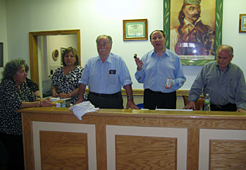 The 24th Annual Spring Festival of the Geros Tou Morea Chapter was recently held on Sunday, May15th in their club house at 27-02 39 Ave., L.I. C. Lambs were barbecued. Excellent Greek cuisine enjoyed by all. “We thank all who helped,” continued Mr. Economou. “We are planning a picnic on Sunday June 26th at the Mattituck Memorial Park, overlooking the Peconic Bay. All are invited to attend.” For more information, call 718 482-1875. Photo – Demetrios Filios, Secretary (third from left) greets all as Mrs. Economou (left to right), Gloria Catsimalis, Treasurer, President Nikos Economou and George Stavropoulos, Vice-President listen. |