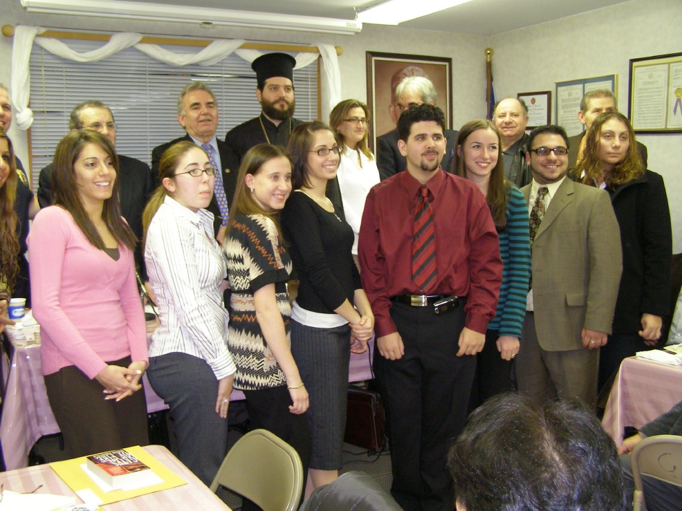On Wednesday, January 3rd, the G.A.H.O.A. along with George Fakiris, a philanthropist, granted $4,500 in scholarships to Queens College and St. John's University students and $6,000 for the establishment of a Queens College Chair for Byzantine Studies at their Annual Vasilopita. Dr. Christos Ioannides, Director of the Byzantine Studies Center, accepted the $3,000 from G.A.H.O.A. and $3,000 from Mr. Fakiris. The 2007 college scholars received $250 from the organization and $250 from Mr. Fakiris. In addition, the book Gates of Fire by Steven Pressfield, based on the Battle of Thermopylae, was given to each scholar. Prof. Catherine Tsounis and Dr. John G. Siolas are the instructors of the St. John's University Modern Greek Language and Literature Program. |