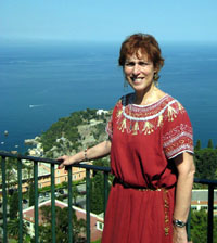 Taormina was on everyone’s program for the next two days. It is the main Sicilian resort. Our group entered the famous theater, that was a highlight of our tour. We had a group photo on the theater’s balcony, overlooking the Ionian Sea. The Taormina theater is the largest in Sicily after Syracuse. It is one of the finest examples of theater building of the Hellenistic and Roman periods. Its acoustics are unique. From the top of the Theater stairs, we had an extraordinary view dominated by Mount Aetna. The theater was built in the 3rd century B.C. by the tyrant Hieron II of Syracuse. Abut 100,000 cubic meters of limestone rock were removed from the site. In the Art and History of Sicily by Bonechi, “the ruins of this excellently preserved . That evening during disco hour, Greek dance music was played for an Athenian tour group. Kalamatiano and Ikarian folk dances were heard throughout the Sicilian hotel. Persons of all nationalities danced Greek in this island that is part of Italy. That week there were many tourists from Greece. One young woman, who spoke English, said her parents were from Sparta. Many had a Greek relative. Mary Summon Scoffer’s grandmother lived in the Greek area of Sicily known as Piazza de Gregi (Plane of the Greeks). “My father’s older sister read the Greek newspaper each day.” she said. “Once when I visited her in New Jersey, she said don’t forget we are blue bloods.” |