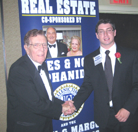 ![]() Scholar Philip Halikias (right) congratulated by grandfather Dr. Robert Halikias |