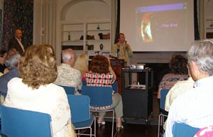 ![]() Dr. Krimigis showing slides of the Cassini Mission to Saturn. |