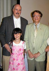 ![]() Irene Michalos, of the community's youth, with her father, Dr. Peter Michalos (left to right) and Dr. Stamatios Krimigis. |
