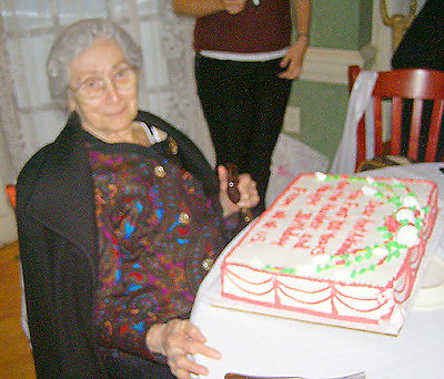 Over ten persons have reached 100 years of age in Queens, New York. Adrienne Livadas of Astoria, New York is unique. Her 100th Birthday was celebrated on the afternoon of November 5th at Punta Dura Restaurant at 41-15 34th Ave. in Astoria. Her family and friends celebrated with her. Adrienne, who is known as "sweetheart" to her family, gave a special smile and thank you to all. |