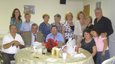 ![]() Robin Lehovitis, (standing left toright), Mrs. Livanos, Voula Anastasiadis, Mrs. Nanos, Andrea Gourlidis, Argery Mavrikos, Mrs. Fragias, Mr. Rigas, Kostas Livanos (sitting left to right), Vassilis Livanos, Nick Issaris and Mrs. Rigas with grandchild are participants in this fabulous buffet luncheon of Greek cuisine. |