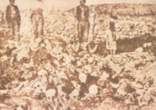 See Also: The Tourkokratia - Was it Really That Bad? Part 1A An unlocated document shows a man standing besides the bodies of Armenian victims of Turkish deportation in the second part of the 1910s |