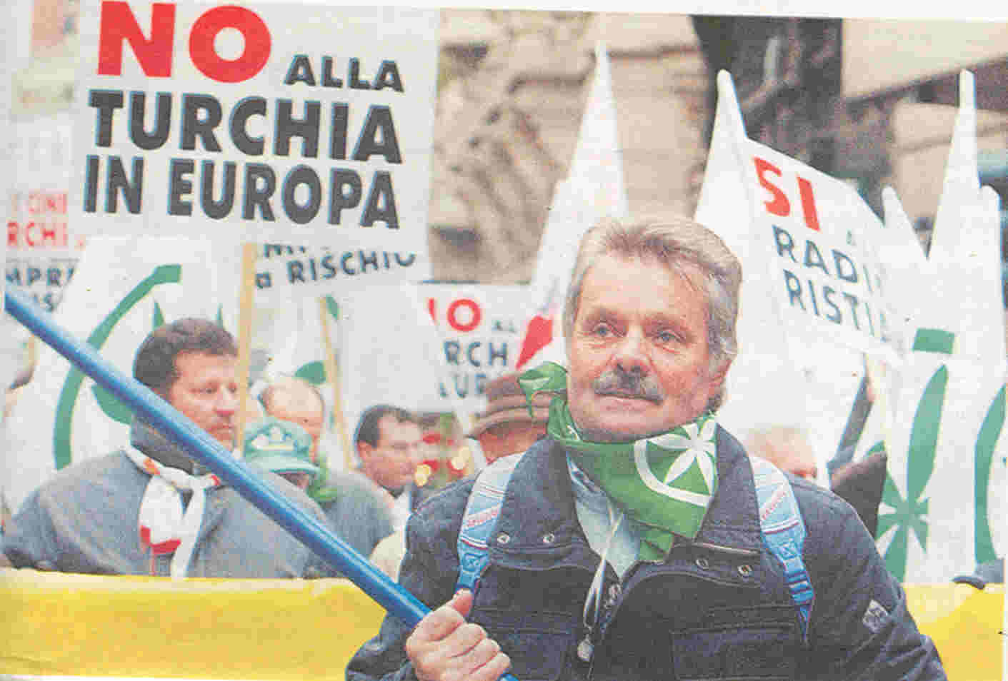 ![]() Many Europeans are opposed to the prospect of Turkey's joining the EU but it was in Milan that thousands of Northern League supporters took to the streets on December 19 to demonstrate against the EU decsion to open membership talks with Turkey next October. A banner in the background reads 'No to Turkey in Europe' |