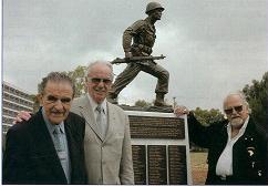 The heroes of Company C, Cominos, Mousalimas, and Lygizos, proudly gather around the monument dedicated in their honor.