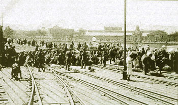 ![]() Men selected for exile [From the editors: selection for exile was a death sentence, since the men were never seen or heard from again and reports leaked out to the west that the men were sent on death marches and crucified on wooden crosses by the thousands along interior roads] |