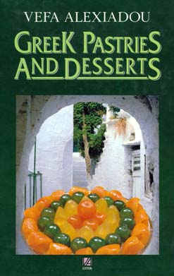 Title: Greek Pastries and Desserts Author: Vefa Alexiadou Publisher: Vefa Alexiadou, Thessaloniki Printer: Pergamos, S.A., Athens Date: 1991 Description: Hardcover, 160 pages, 8.3 x 4.2, numerous photographs ISBN: 90-85018-7-3 List price: $24.95 Alexiadou is an irrefutable authority on Greek pastries. Not only is Greek Pastries and Desserts written with precision, successfully adapting centuries-old recipes to modern methods, but the arrangement of recipes and their presentation must be lauded. At long last, here is a book that is as visually and aesthetically appealing as it is reliable and accurate. Experienced and neophyte bakers alike will find this handsomely bound tome indispensible.