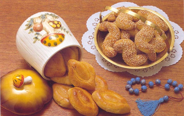 Smyrna Cookies (Koulourakia Smirneika) Yields 40 Cookies Preparation time 1 hour and 30 minutes Baking time 20 minutes Ingredients 1 cup unsalted butter 4-1/2 cups all-purpose flour 1 teaspoon baking powder ¼ teaspoon baking soda ¾ cup sugar 2 egg yolks ¼ cup milk ½ teaspoon mastic from Chios, ground 1-2 egg yolks, beaten with 2 teaspoons water Directions To clarify the butter, melt it over low heat, cook and refrigerate overnight. The next day, lift off the solidified butter and discard the water. To speed up the procedure, freeze the butter for 1-2 hours. Sift together the flour, baking powder and soda. Cream the butter and the sugar until light and fluffy. Beating continuously, add the egg yolks, one at a time; then add the milk and flavoring. Beating with the dough hook or by hand, gradually fold in the sifted ingredients and knead lightly to form a soft, pliable dough. Roll pieces of dough into 10-inch long, finger-thick strips. Shape each strip into a capital letter "N" figure. Press the edges tightly together to form the cookies into small boat shapes. Arrange them on lightly greased baking sheets and brush the tops with the egg yolk mixture. Bake in a 350-degree-Fahrenheit oven for about 20 minutes. Cool and store in a cookie tin.