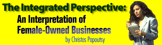 By Christos Papoutsy Founder and Publisher, Hellenic Communication Service "Integrated perspective" is a term referring to a particular school of thought in the business world, one that suggests that women conceive of their businesses as interconnected systems of relationships rather than as separate economic units in a social world -- the latter perspective, according to this school, belonging to men. These systems of relationships place the businesswoman at the center of a network that includes family and community as well as work. Thus is her business "integrated," and thus is success understood as a balance