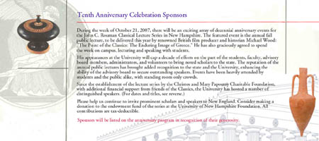 Tenth Anniversary Brochure for the John C. Rouman Classical Lecture Series |