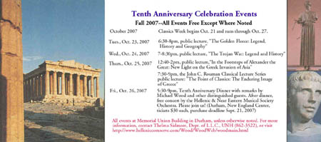 (Updated 09 September 2007) Hosting of webpages sponsored by Hellenic Communication Service, the Christos and Mary Papoutsy Charitable Foundation. For more information, contact the Classics Program at UNH or Hellenic Communication Service (PO Box 710, Rye Beach, NH 03871; helleniccomserve@papcoholdings.org). |